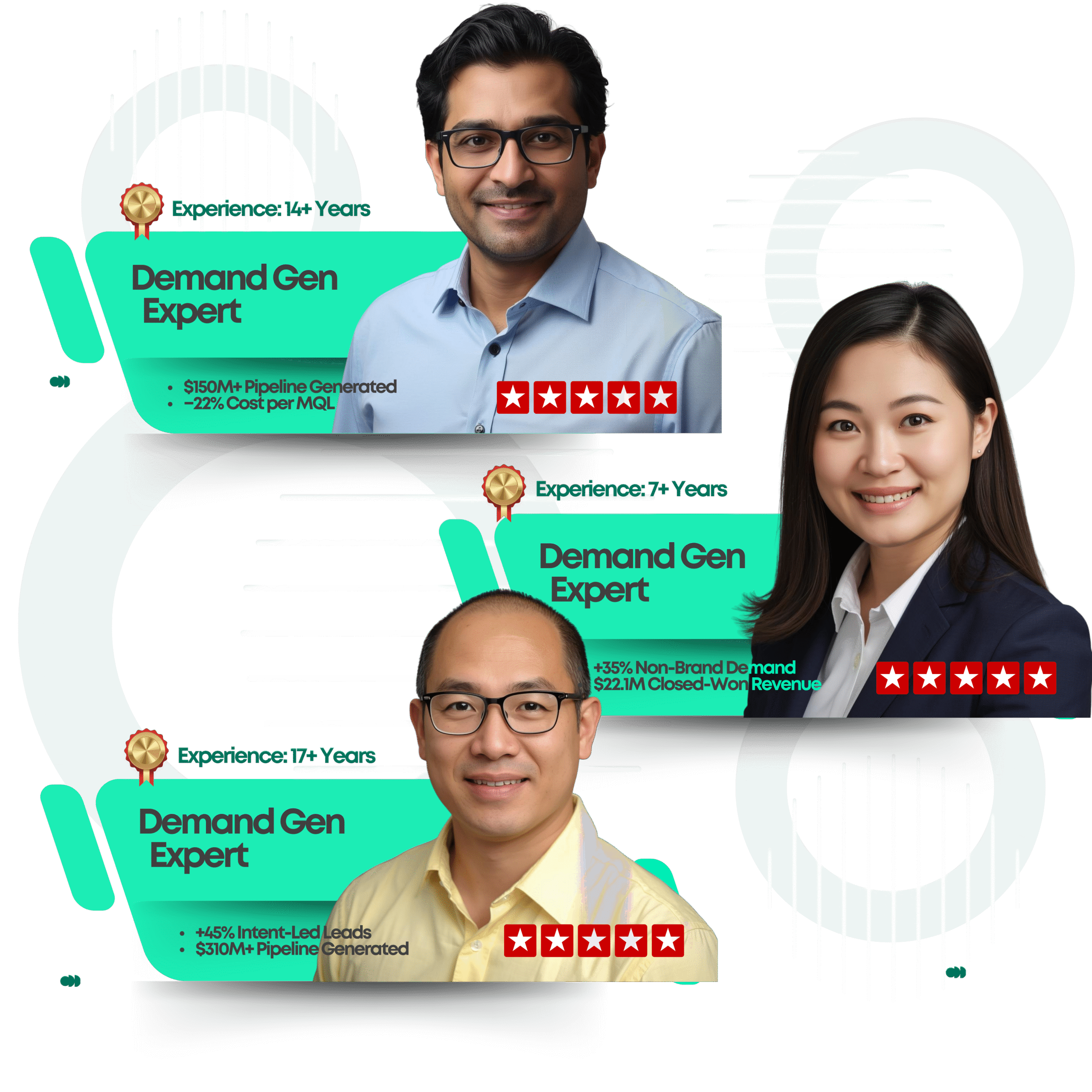 TopFracs Demand Gen experts are top-tier, thoroughly vetted specialists who have built and scaled predictable demand engines across paid, organic, outbound, and lifecycle channels.