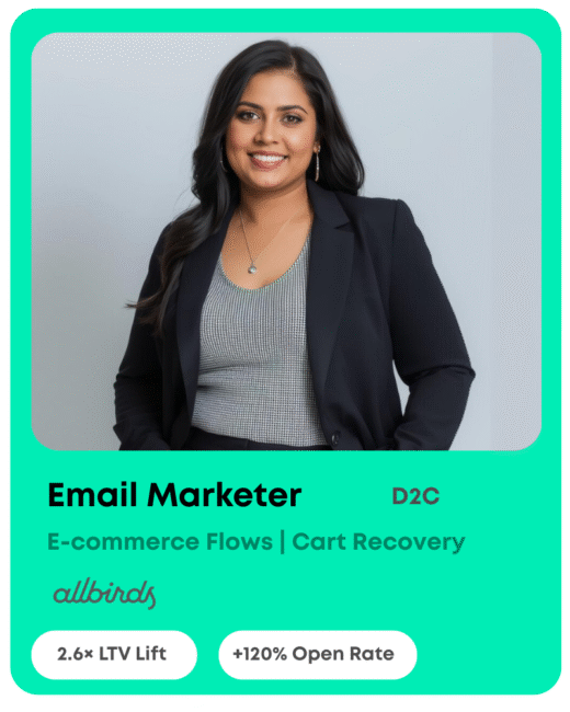 TopFracs Email Marketers are top-tier, thoroughly vetted experts who drive results across B2B, B2C, and D2C through lead generation, lifecycle marketing, retention, and revenue-focused email programs, who have previously worked at top companies globally.