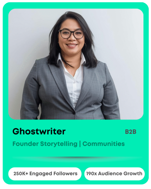 Get elite, battle-tested ghostwriters across the globe, who’ve helped build top personal brands. Rigorously vetted, outcome-driven fractionals and freelancers – available in days, not weeks. Scale faster with global top tier talent you can trust.