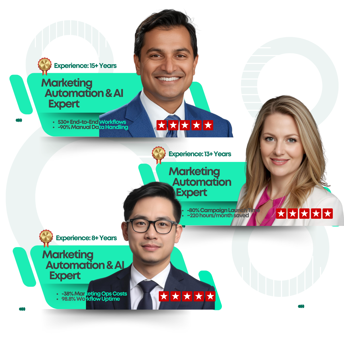 Work with top automation specialists who understand complex buyer journeys, cross-channel orchestration, and scaling marketing systems.