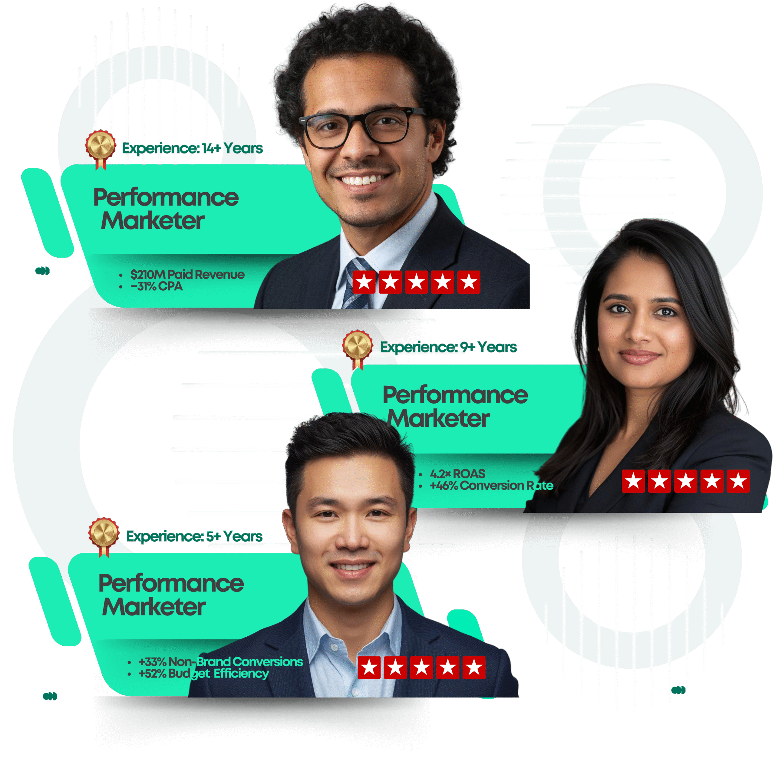 Get elite, battle-tested performance marketers across the globe, who know how to deliver maximum ROAS. Rigorously vetted, outcome-driven fractionals and freelancers – available in days, not weeks. Scale faster with global top tier talent you can trust.